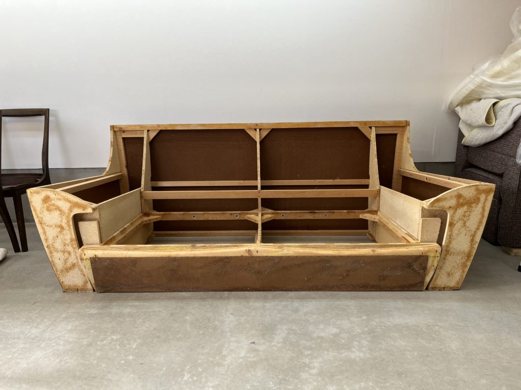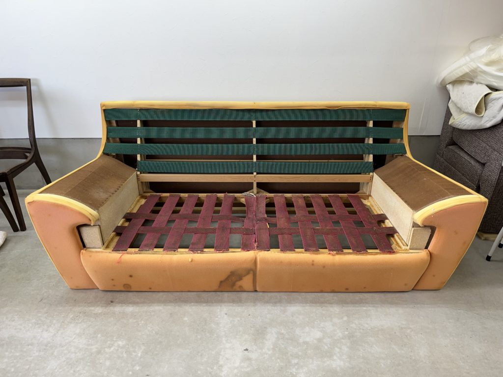 座面の落ち込みが激しかったので心配しましたが、ベルトの隙間からウレタンが落ちていただけでした。
