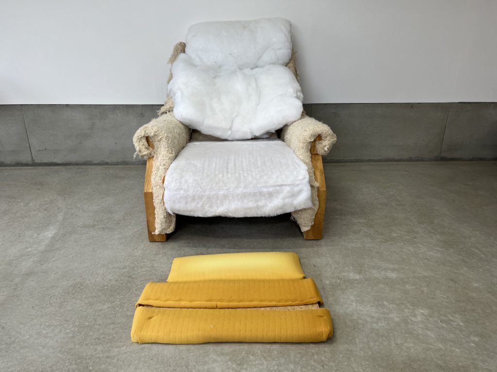 1人掛けリクライニングソファ張り替え。