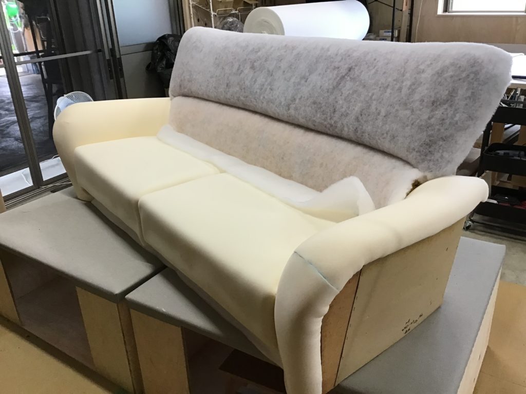 2人掛け両肘ソファの張り替えのご依頼をいただきました。
